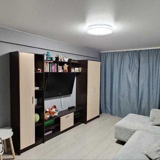 Квартира в хорошем состоянии (стеклопакеты, на полу ламинат, межкомнатные двери, натяжной потолок, санузел раздельный в кафеле)