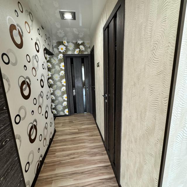 Продается большая, просторная 5-ая квартира улучшенной планировки, на комфортном 4-ом этаже, с двумя утепленными балконами, двумя санузлами, все комнаты выходят во двор, а кухня/зал на микрорайон Кирова. В квартире сделан качественный/хороший ремонт: полы ламинат/керамагранит, установлены везде стеклопакеты, одинаковые межкомнатные двери с магнитными замками; натяжные глянцевые потолки с точечными эксклюзивными светильниками под заказ, корейские дорогие обои; ванна/туалет кафель, теплый пол, счетчики ХГВ; новая сантехника, электропроводка, во все комнаты заведен телевизионный кабель; остаются во всех комнатах встроенные шкафы, в коридоре прихожая, на кухне встроенная кухня с техникой - плита BOSCH, духовой шкаф, посудомоечная машина.