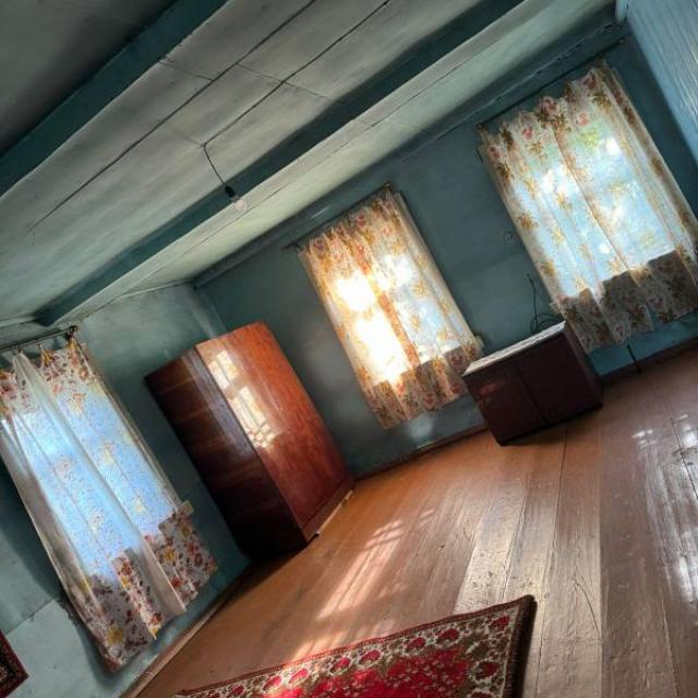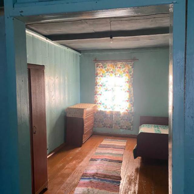 Добротный брусовой дом, 4 комнаты, печное отопление. Туалет на улице. Гараж, баня, кухня, дровяник с дровами. Не топит. Ходит автобус. В поселке есть школа, детский сад, ДК, амбулатория.