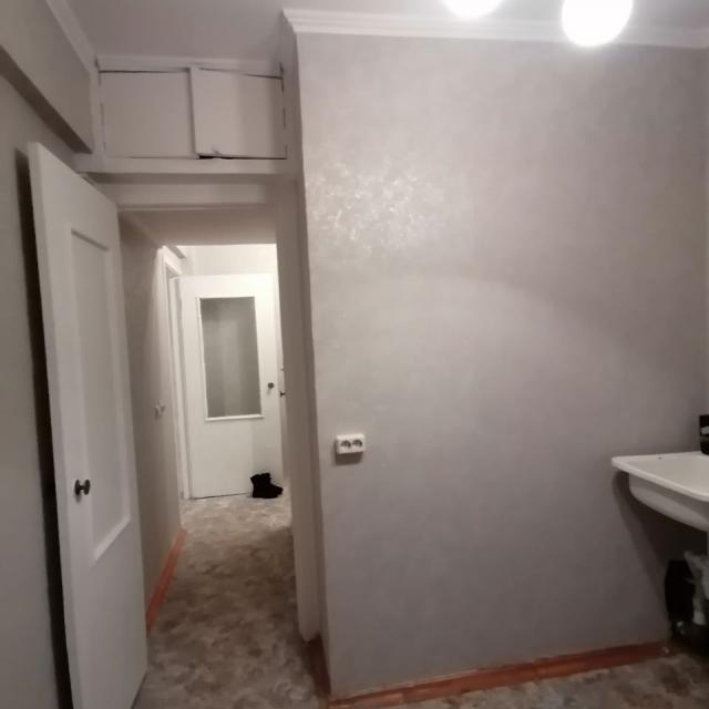 Сделан свежий косметический ремонт. Постелен линолеум, дорогие обои, потолок побелен, окна и двери покрашены. Балкон 6м остеклен.