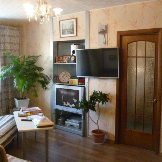 Пол в прихожей/гостиной ламинат, на кухне и гардеробной – линолеум, в ванной комнате – плиты, в спальне – ковролин.