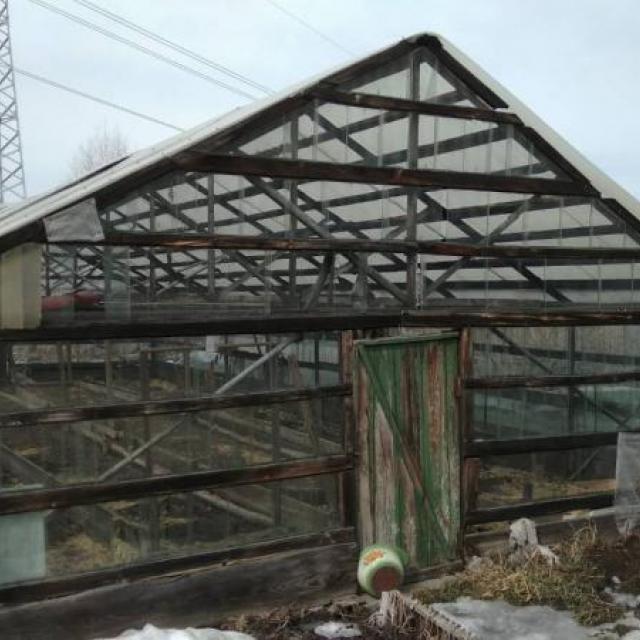 забор металлический, 2 теплицы, сарай, насаждения