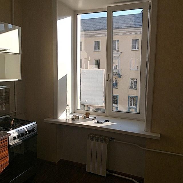 - Состояние квартиры: Пластиковые окна, заменены трубы и радиаторы. Туалет и ванна под кафелем. В коридоре стеновые панели. На полу линолеум, входная дверь заменена. Реальному покупателю торг. Кухонный гарнитур остаётся.