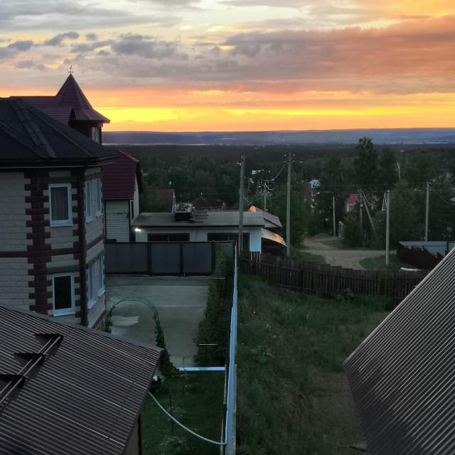 Над гаражом терраса S=60 кв.м с панорамным видом на Иркутск и вдалеке виднеется р. Ангара.