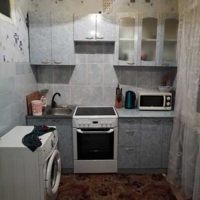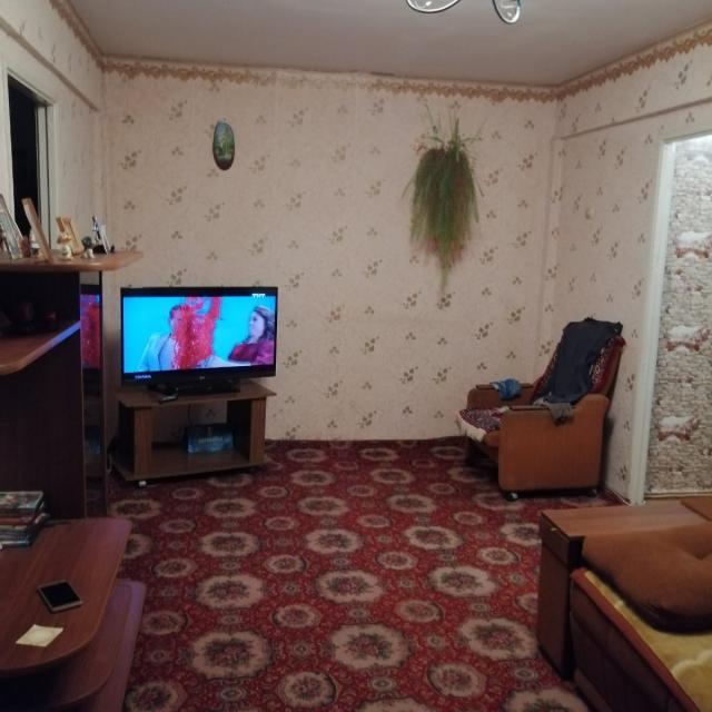 Продается квартира в обычном, жилом состоянии, кухня с комнатой совмещены (установлены стеклопакеты, на полу частично линолеум, санузел в кафеле, евро дверь)