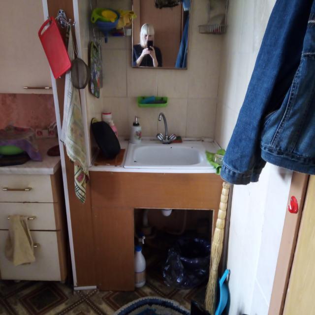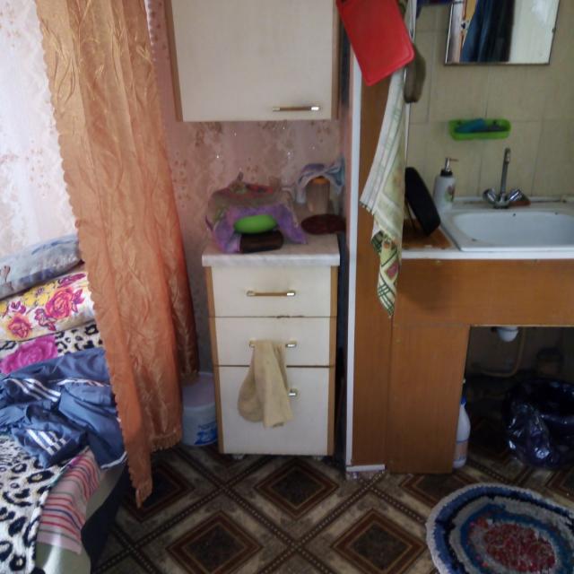 - Состояние комнаты: Комната в секции из 5 комнат, 4 хозяина. К комнате прикреплен личный туалет! Ванная общая, сушилка и мусоропровод. Балкон застеклен, на полу линолеум, стеклопакет. В комнате раковина.