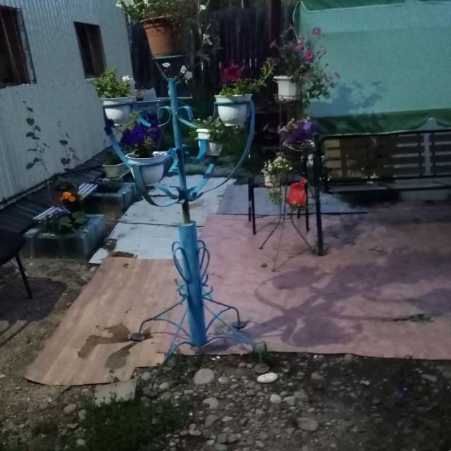 Одноэтажный теплый дом с зимним проживанием, крыша - профлист, стеклопакеты деревянные, кладовка, веранда. Вагончик для инструментов, душевая и туалет отапливаются. Печное отопление. Летний водопровод. 2 теплицы, парник, стайка зимняя. Забор из профлиста.