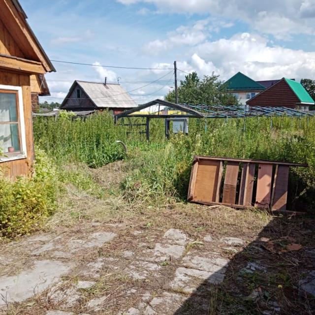 Дом засыпной на небольшом фундаменте, одна комната и веранда, есть еще кладовка у дома. Участок огорожен, есть гараж, теплица