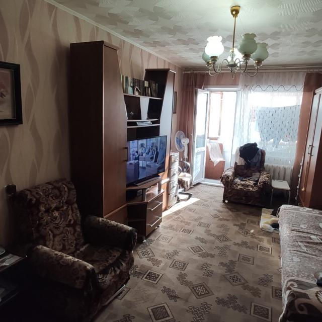 Квартира в нормальном, жилом состоянии (установлены стеклопакеты, на полу линолеум, балкон остеклен, в санузле частично стеновые панели, счетчики ХГВ)