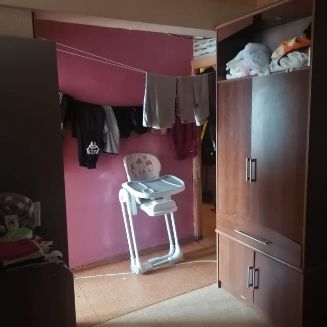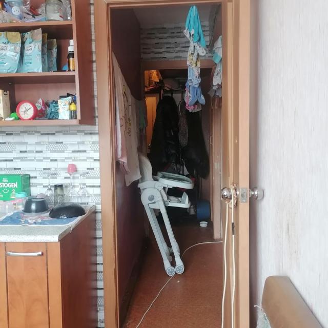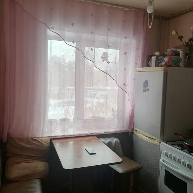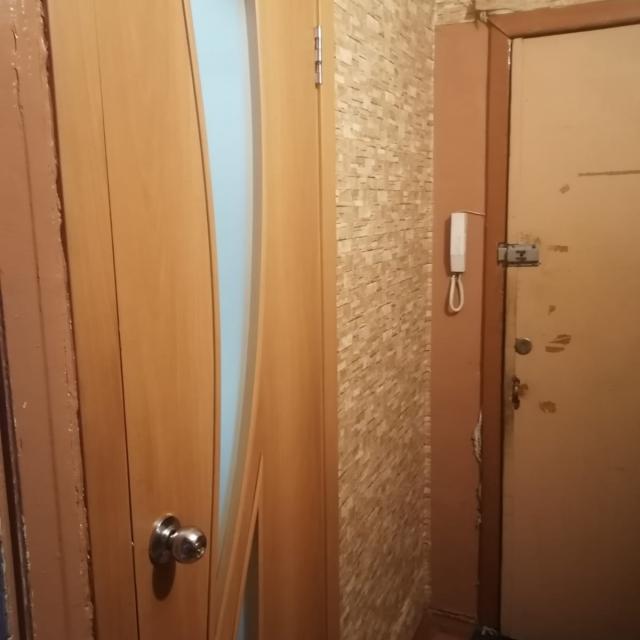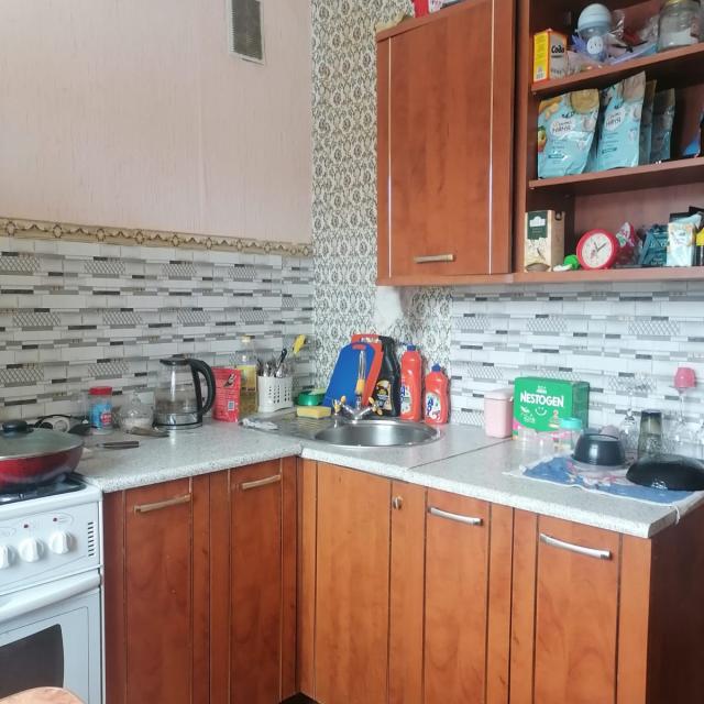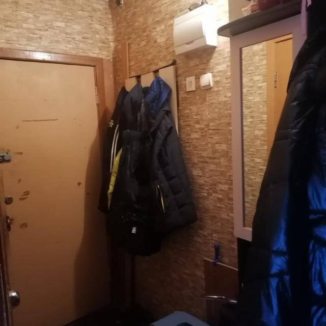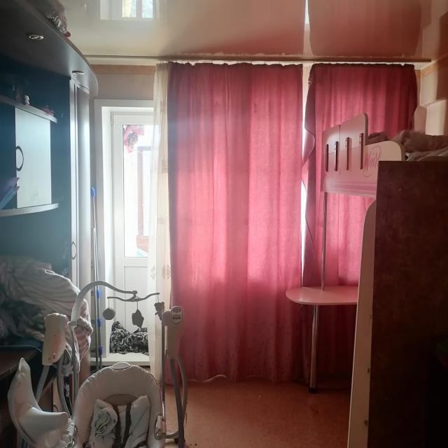 Квартира в нормальном, жилом состоянии (стеклопакеты, на полу линолеум, 1 радиатор, меж.дверь, сч.ХГВ., балкон остеклен - дерево)