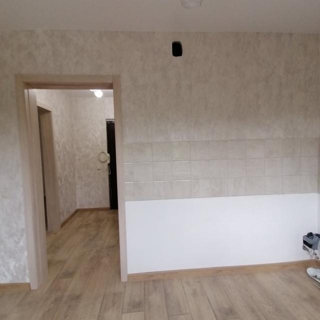 Квартира после ремонта, санузел облицован плиткой, унитаз - инсталляция, кухня фартук - плитка, натяжной потолок, свежие обои