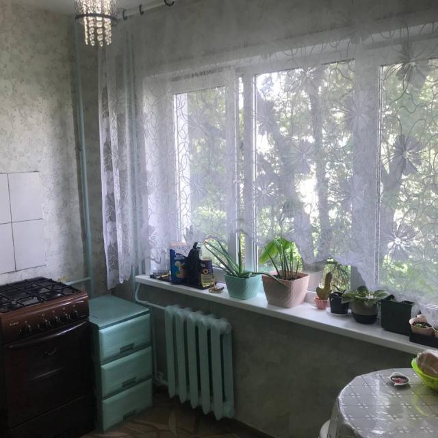 Состояние нормальное, жилое. Стеклопакеты. Просторная кухня с большим трехстворчатым окном.